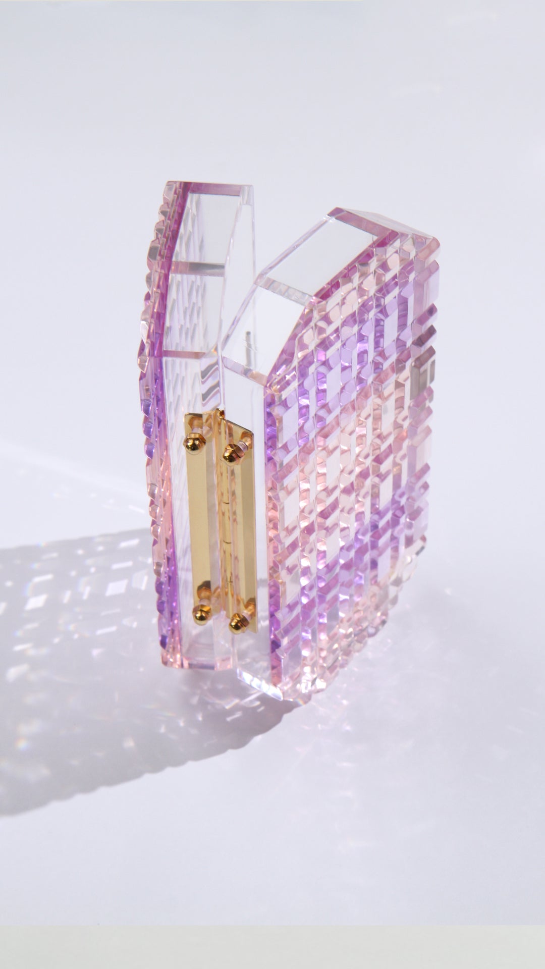 The Sierra Clutch is a versatile and eye-catching accessory. Its jewel pattern engraving makes it a perfect addition to any outfit. Made of ombré acrylic, it offers versatility and elegance